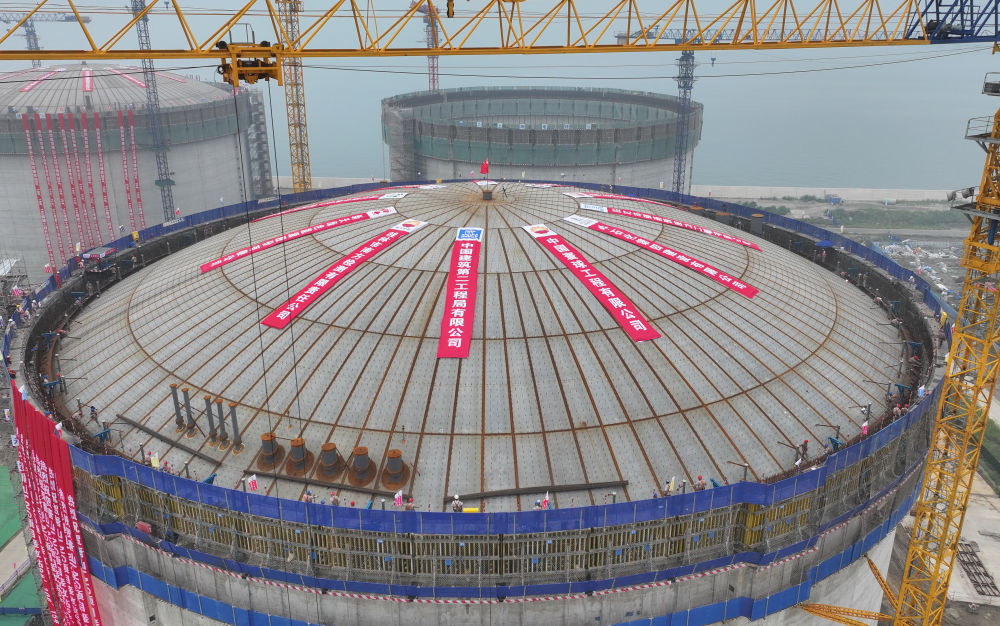当日,河北省唐山市曹妃甸新天LNG接收站项目二阶段工程两座储罐顺利封顶,标志着二阶段部分工程由土建施工阶段转入设备安装阶段。据介绍,该项目设计年接卸能力1200万吨,分三阶段建设。项目一阶段工程已于今年6月份投产,年供气能力约70亿立方米。项目全部建成投产后,将有力提高京津冀地区天然气应急调峰和供应保障能力,对改善京津冀地区能源结构、推进大气治理发挥重要作用。