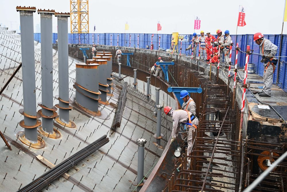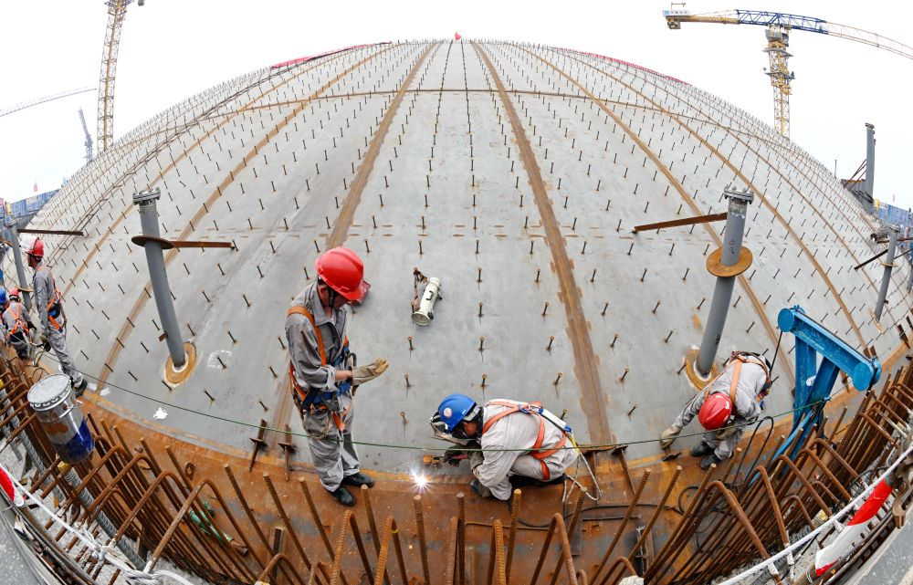 8月18日,工人在唐山市曹妃甸新天LNG接收站项目二阶段工程建设工地施工。新华社记者杨世尧摄
