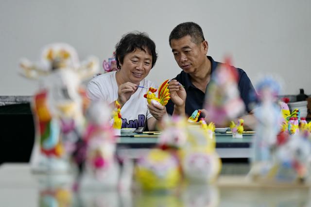 9月16日,玉田泥塑艺人在玉田县“非遗会客厅”工作室内制作泥塑。 新华社记者 牟宇 摄