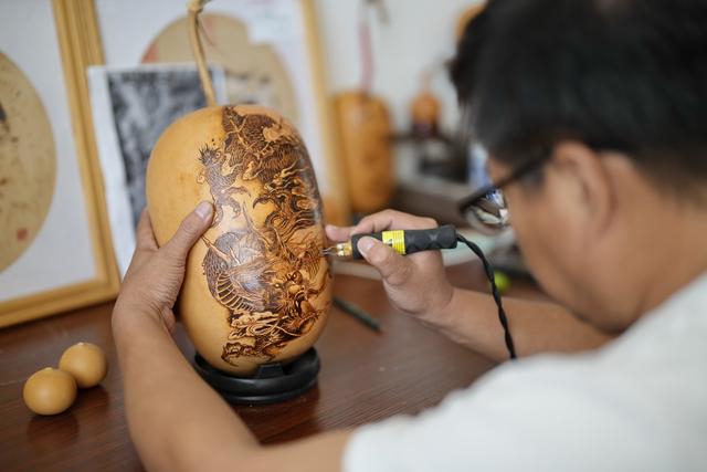 9月16日,烙画艺人在玉田县“非遗会客厅”工作室内制作烙画。 新华社记者 牟宇 摄