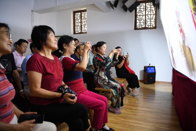9月16日,市民在玉田县“非遗会客厅”皮影工坊内观看皮影戏表演。 新华社记者 牟宇 摄