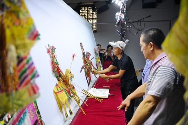 9月16日,皮影戏艺人在玉田县“非遗会客厅”皮影工坊内表演皮影戏。 新华社记者 牟宇 摄