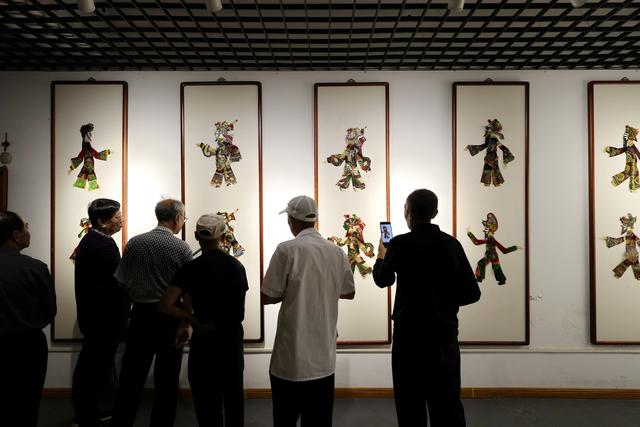 9月16日,市民在玉田县“非遗会客厅”展室内参观展出的皮影人。 新华社记者 牟宇 摄